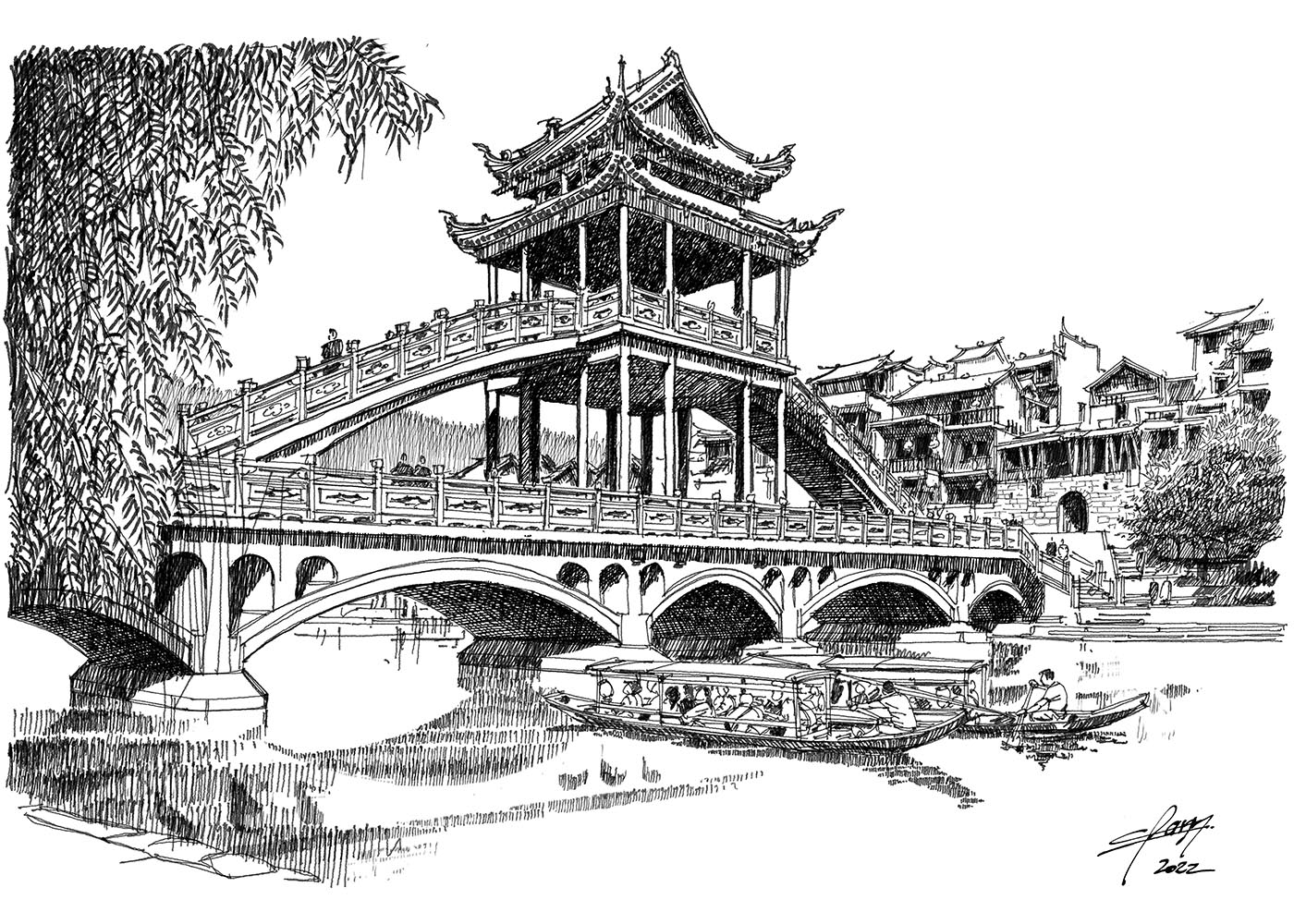Once the edge of the empire, Fenghuang (凤凰) strived as a trading center between the Han civilisations of the central plains and the Miao (苗), Tujia (土家) and Dong (侗) minorities of the southwest mountains. Meaning “phoenix” in Chinese, Fenghuang old town was established in 1704.